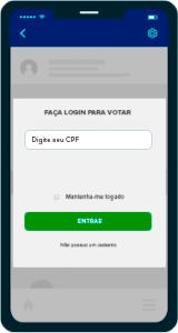 Ao acessar a página de votação através de seu computador ou smartphone digite seu CPF no campo indicado para fazer login.